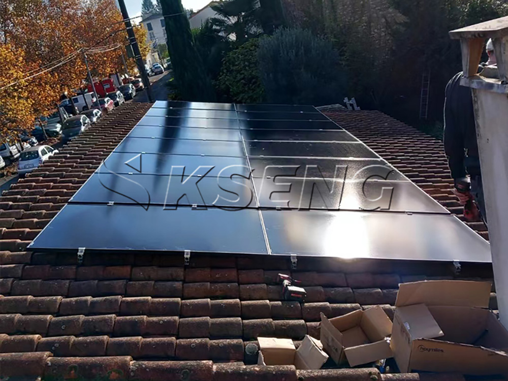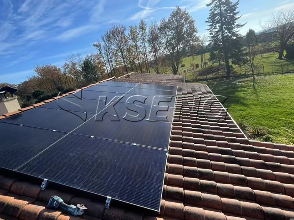 Le projet utilise un système de montage solaire spécialisé conçu spécifiquement pour les toits de tuiles.